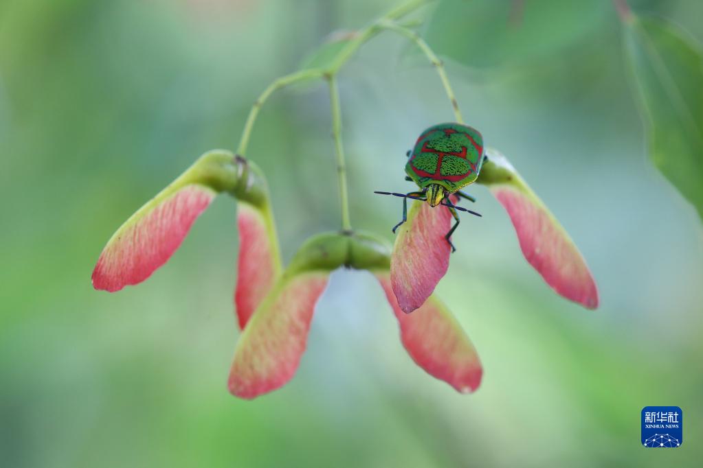 云南省曲靖市,一只盾蝽在植物果實(shí)上停歇(9月16日攝)。