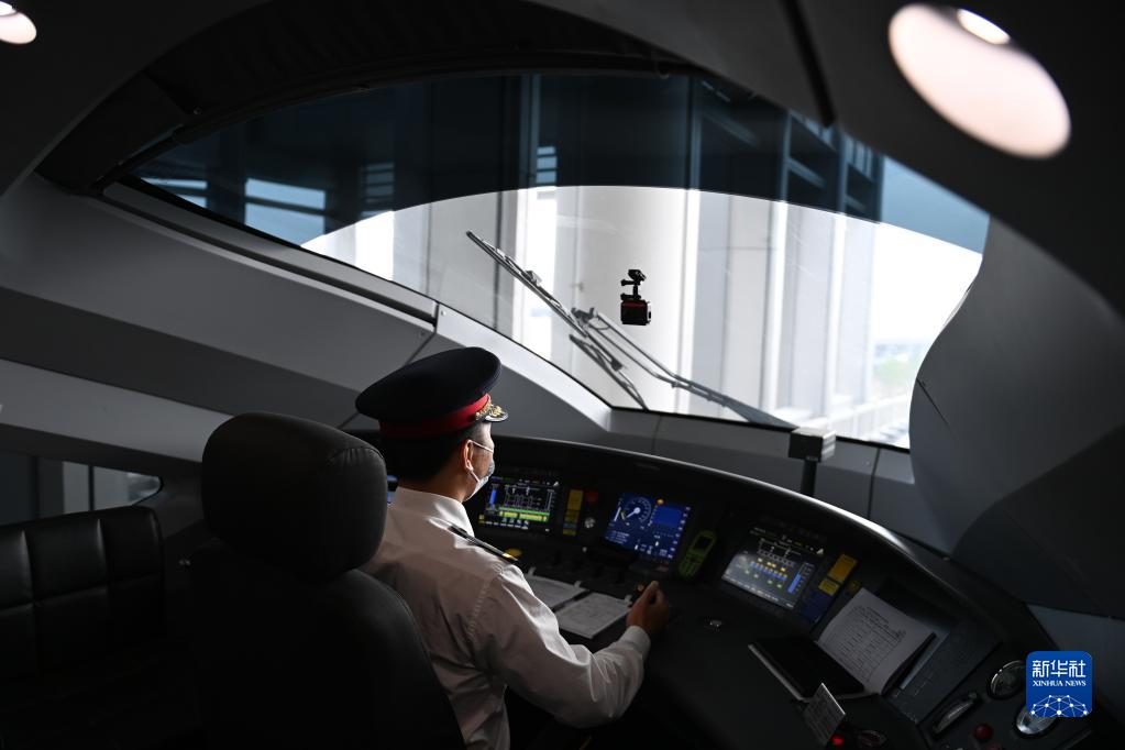 9月22日,合杭高鐵湖州至杭州段首趟列車(chē)司機在駕駛室等待發(fā)車(chē)指令。