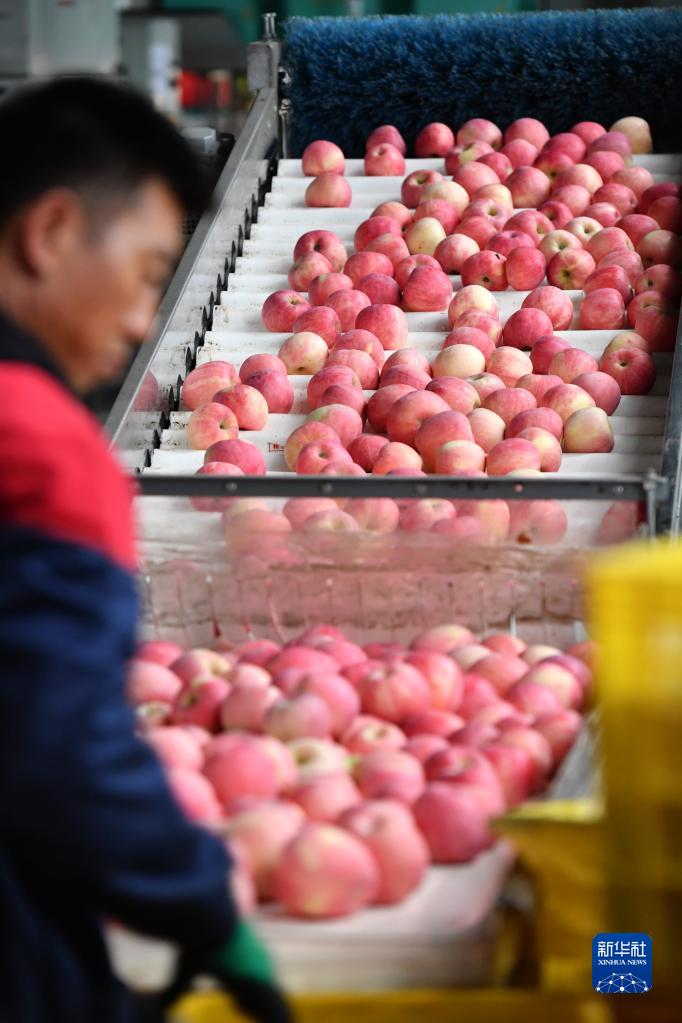 9月20日,洛川縣一家果業(yè)公司的工作人員在選果線(xiàn)上忙碌。