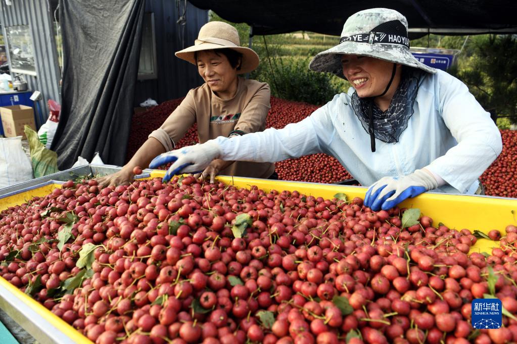 在山東省新泰市劉杜鎮南流泉村,紅彤彤的山楂掛滿(mǎn)枝頭,村民們忙著(zhù)采摘、包裝、交易。劉杜鎮是遠近聞名的山楂產(chǎn)地,全鎮山楂種植面積2.3萬(wàn)畝。