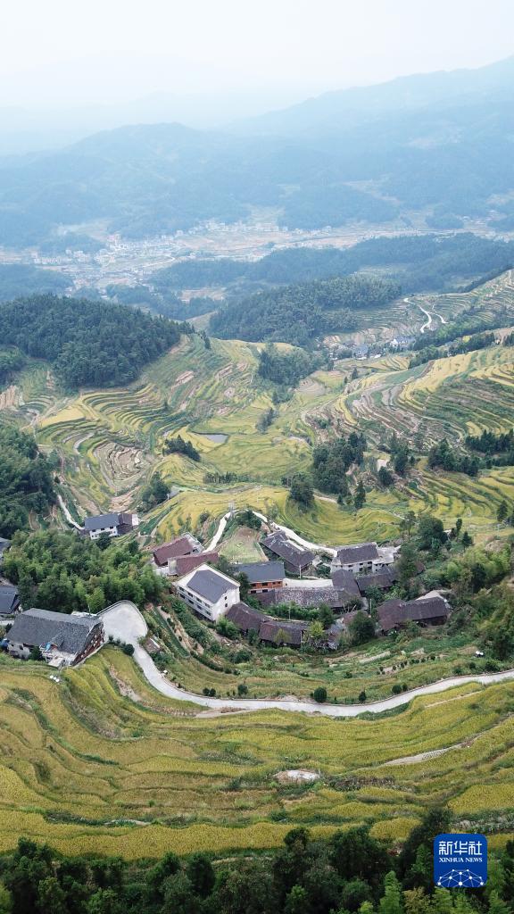 金秋時(shí)節,湖南省婁底市新化縣紫鵲界梯田的水稻進(jìn)入成熟收割期。紫鵲界梯田是世界灌溉工程遺產(chǎn)和全國首批19個(gè)重要農業(yè)文化遺產(chǎn)之一,梯田層層疊疊連綿起伏。