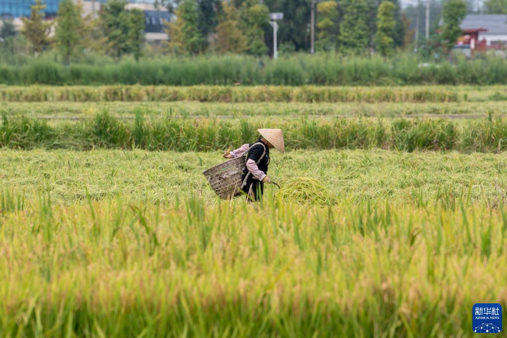 時(shí)值秋收,農業(yè)大省四川省各地農田里一片繁忙的收割景象。