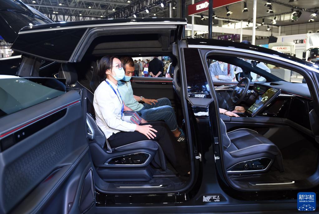 9月21日,觀(guān)眾在2022世界制造業(yè)大會(huì )新能源汽車(chē)展廳內參觀(guān)體驗。