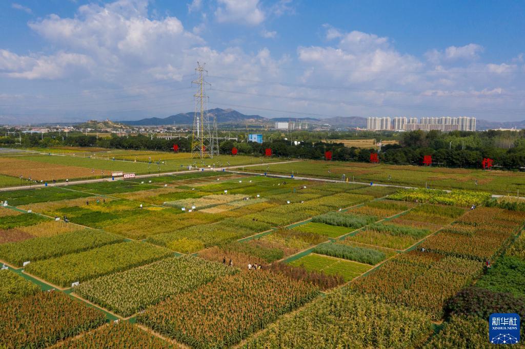 這是9月22日拍攝的位于山西省忻州市忻府區小檀村的雜糧科技展示園(無(wú)人機照片)。