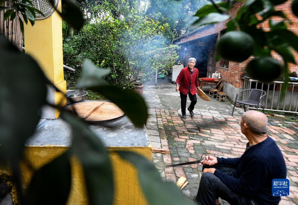 9月21日,在陜西省安康市漢濱區棗園村,張萬(wàn)露的爺爺奶奶在家中小院生火做飯。