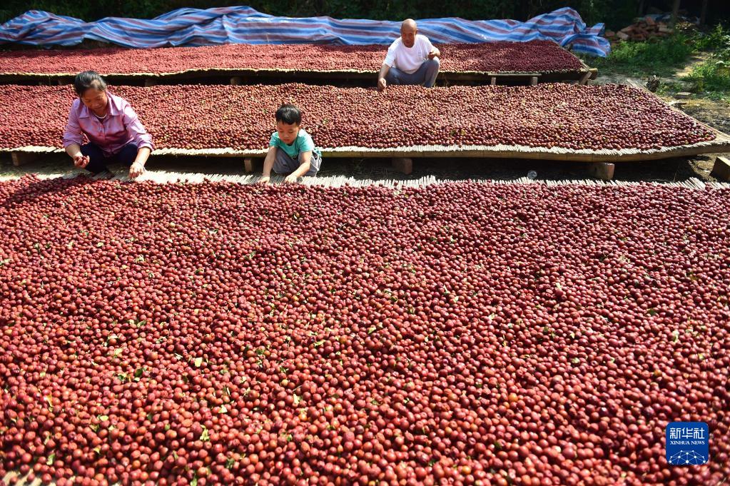 9月16日,在河北省滄縣高川鄉,農民晾曬剛收獲的金絲小棗。