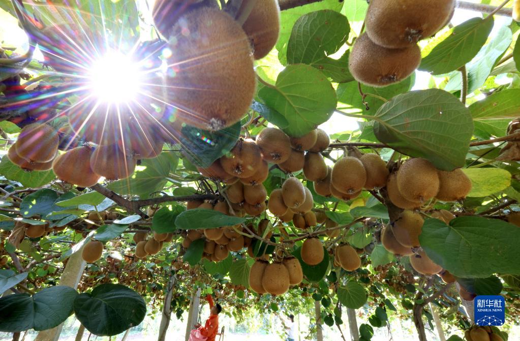 9月17日,山東省棗莊市齊村鎮前良村村民采摘獼猴桃。