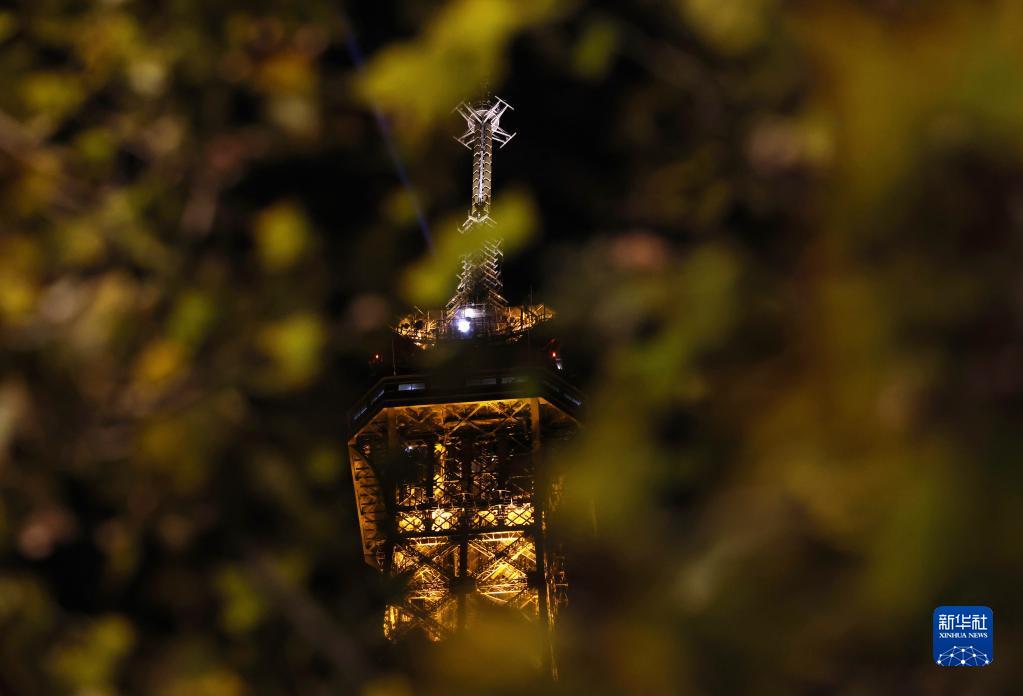 這是9月22日拍攝的亮燈的法國巴黎地標性建筑——埃菲爾鐵塔。