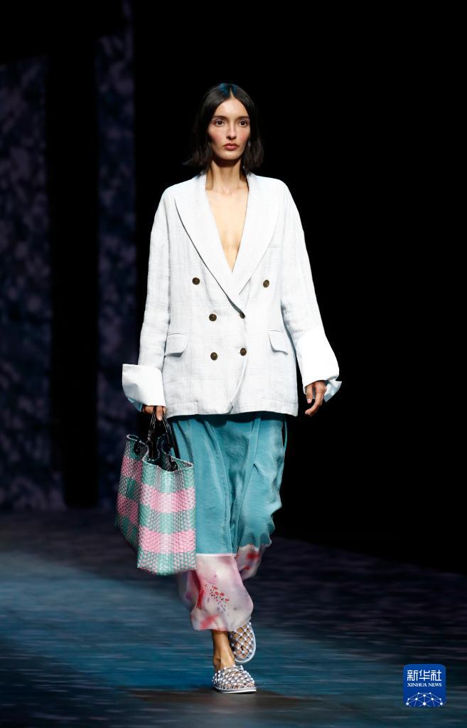 9月22日,模特在意大利米蘭女裝周上展示安普里奧·阿瑪尼品牌的2023春夏新款服裝。