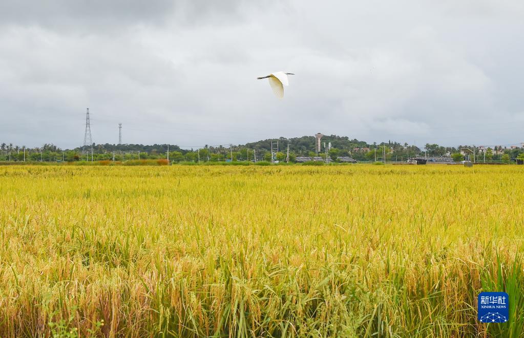 近日,位于海南陵水的國家南繁科研育種核心區安馬洋基地的稻田里稻香撲鼻,一片豐收在望的景象。