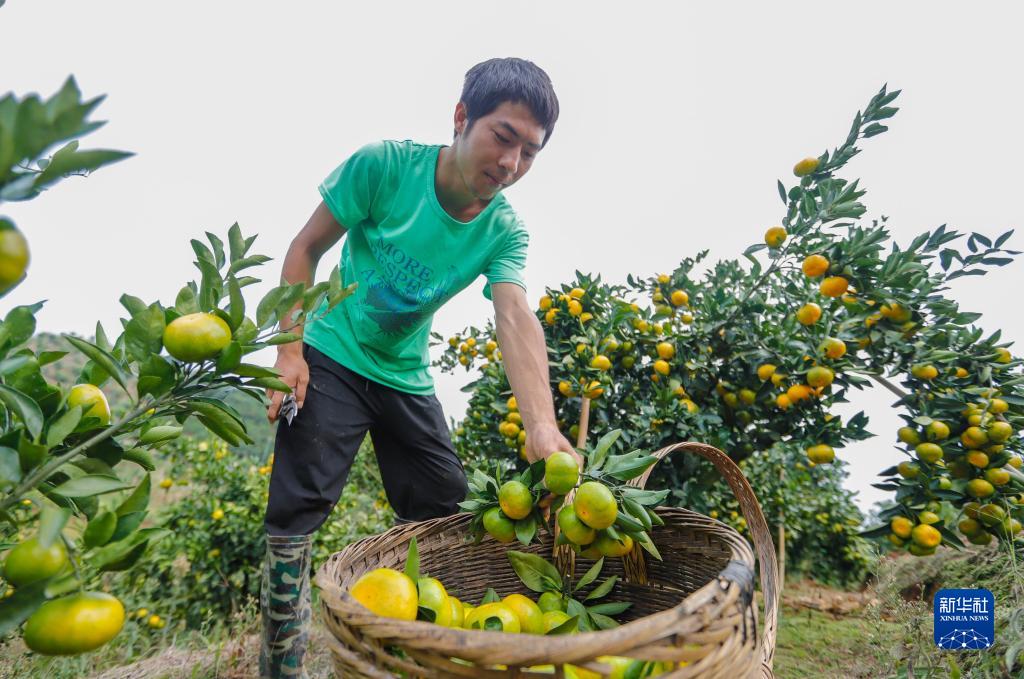9月20日,在貴州省獨山縣下司鎮新同村,“90后”果農李東在自家柑橘園中采摘柑橘。李東家種植柑橘50余畝,今年預計產(chǎn)出新鮮柑橘20萬(wàn)斤。