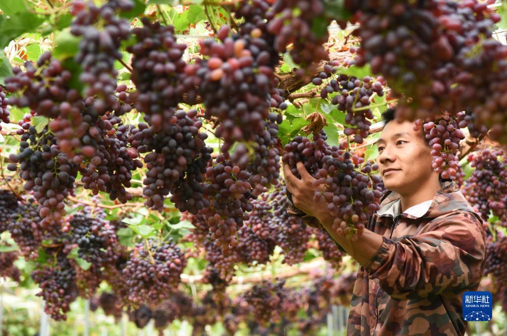 9月19日,在云南省麗江市古城區大研街道文智社區,“90后”李聰在創(chuàng )業(yè)果園里采摘葡萄。2021年9月,李聰在文智社區租地自主創(chuàng )業(yè),種植了10畝葡萄,發(fā)展集休閑、觀(guān)光為一體的農家采摘園。今年預計收入近20萬(wàn)元。