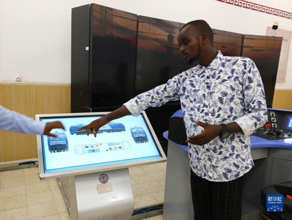 9月19日,在位于吉布提首都吉布提市的吉布提工商學(xué)校,學(xué)生在魯班工坊使用電子觸摸屏。