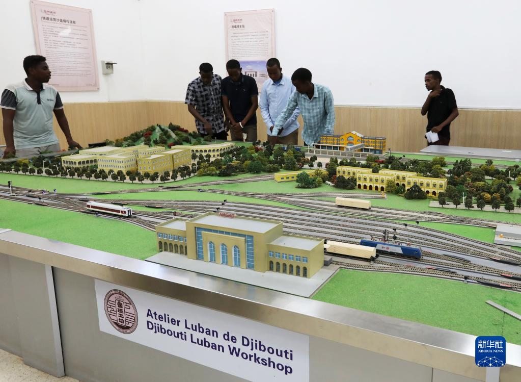 9月19日,在位于吉布提首都吉布提市的吉布提工商學(xué)校,學(xué)生在魯班工坊鐵道運營(yíng)沙盤(pán)教學(xué)區學(xué)習。