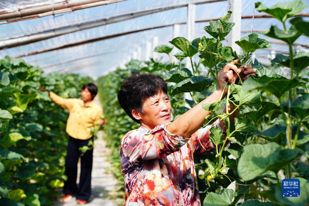 9月24日,在惠民縣胡集鎮哈密瓜種植基地,村民在打理瓜秧。
