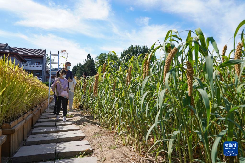 9月24日,秋收活動(dòng)參與者在參觀(guān)北京先農壇“明清耤田”。