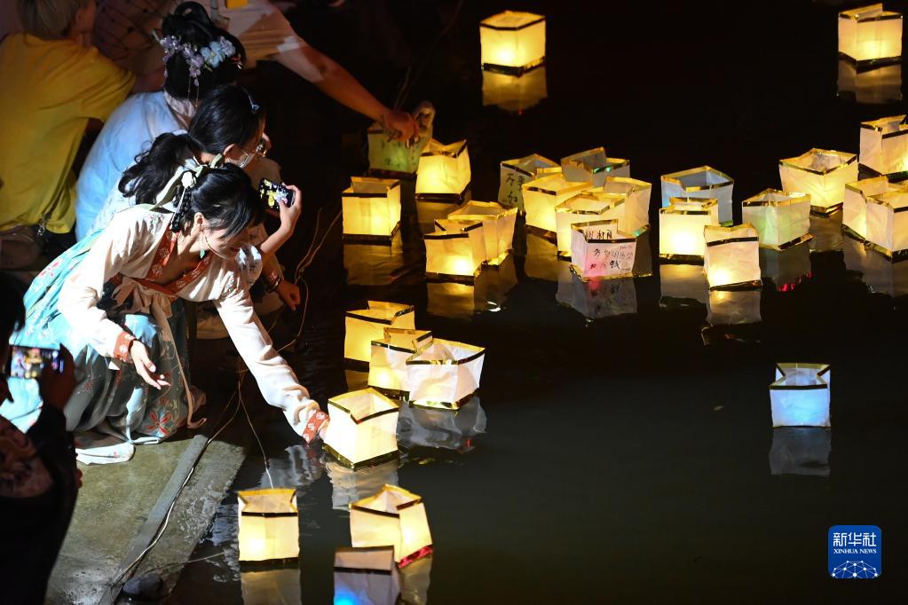 當日,浙江杭州宋城景區秋季主題活動(dòng)“天燈節”啟幕,《河燈祈?!贰度A燈巡游》《華服秀》等主題演出和活動(dòng)全新亮相,游客與演員同賞花燈,共放河燈,祈福納祥。