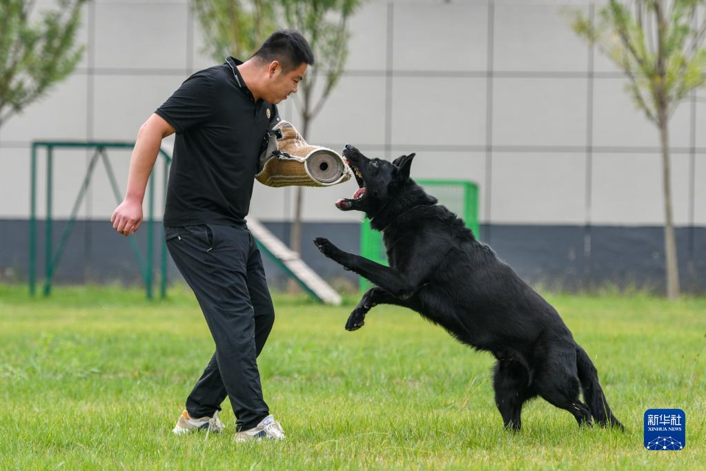 9月20日,治安犬“黑豹”進(jìn)行撲咬訓練。