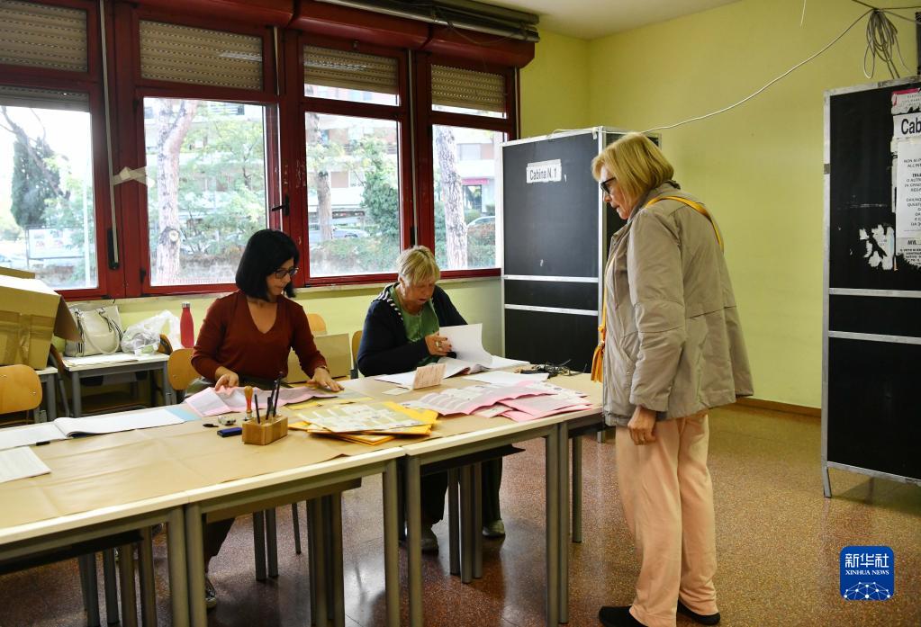 9月25日,工作人員在意大利羅馬一處投票站為選民服務(wù)。