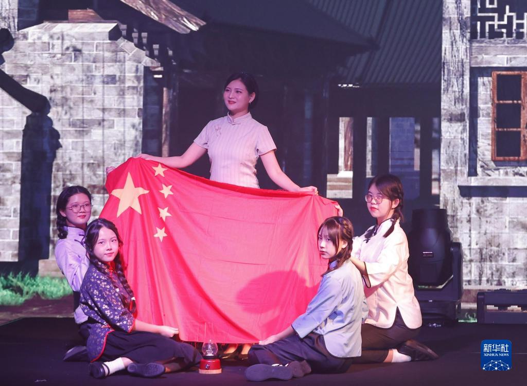 9月25日,演員演出以澳門(mén)升起第一面五星紅旗的真實(shí)故事為藍本改編的短劇《五星紅旗》。新華社發(fā)