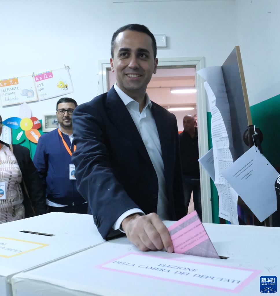9月25日,意大利外長(cháng)迪馬約在那不勒斯的一處投票站投票。