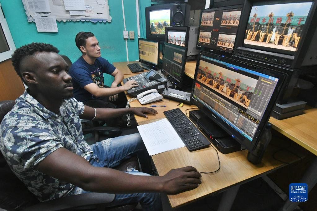9月22日,在古巴首都哈瓦那,古巴國家電視臺多視覺(jué)頻道的技術(shù)人員在演播室準備播放中國紀錄片《我的鄉村故事》。