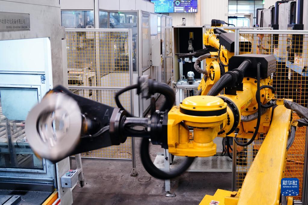 9月25日,在山東惠宇汽車(chē)零部件有限公司,工業(yè)機器人在加工制動(dòng)盤(pán)。