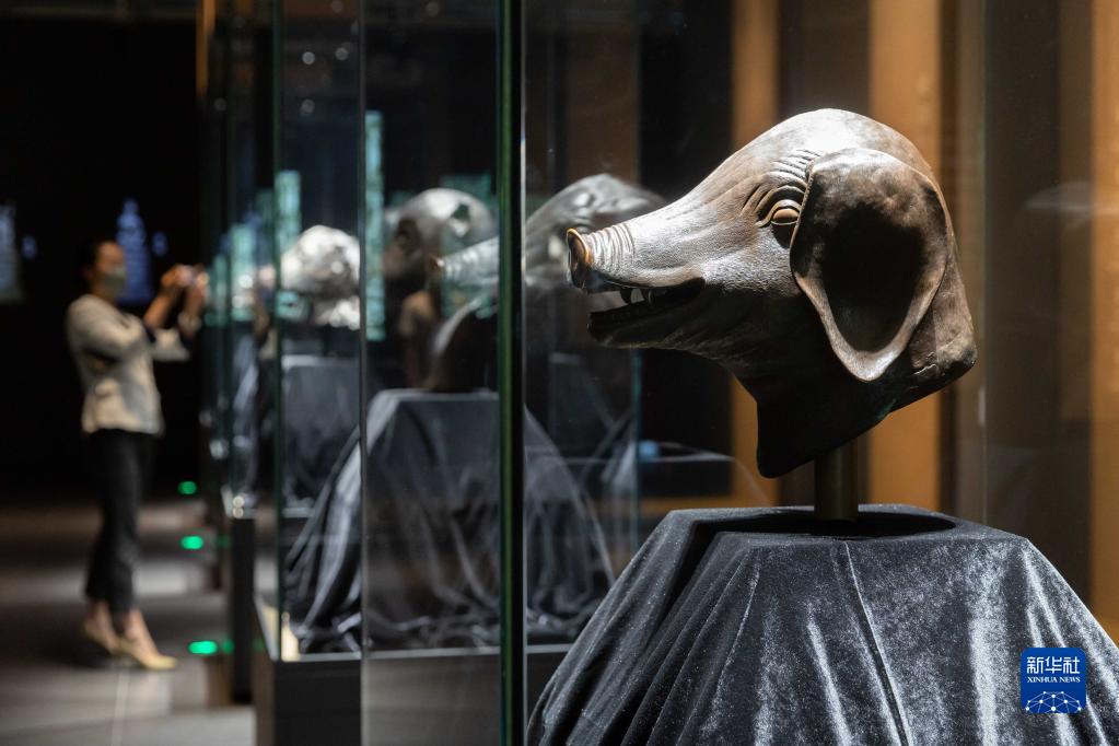 9月26日,觀(guān)眾在觀(guān)看展出的獸首。