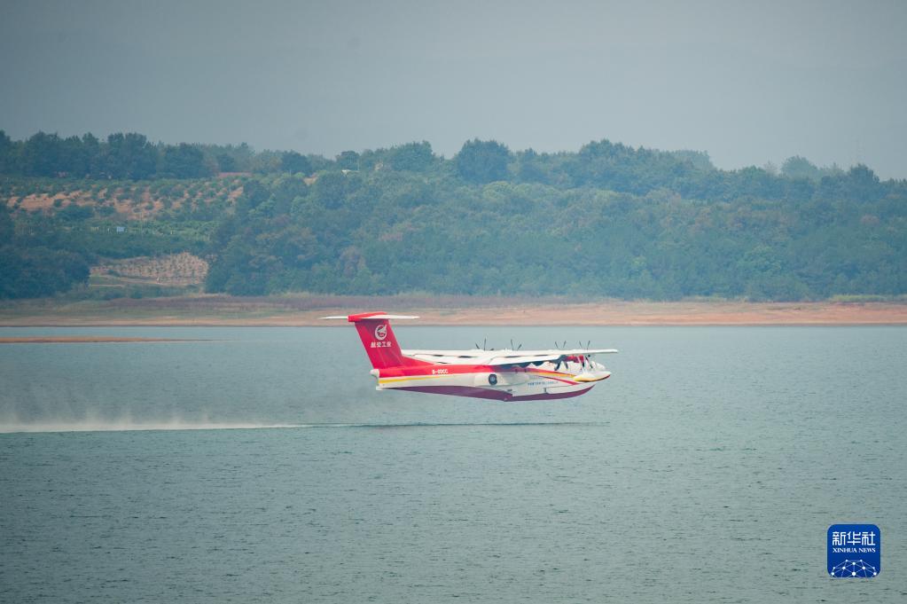 9月27日,“鯤龍”AG600M在水上滑行起飛。