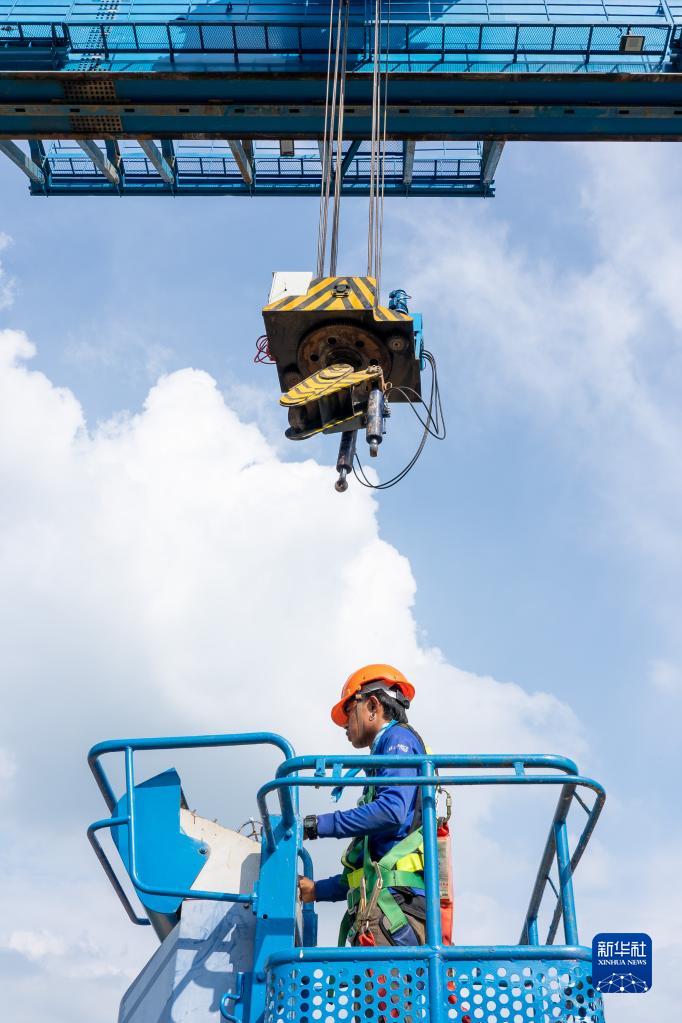 9月7日,在泰國呵叻,一名工作人員在中泰鐵路建設現場(chǎng)工作。