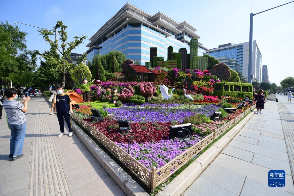 國慶節假期日益臨近,北京天安門(mén)廣場(chǎng)的“祝福祖國”巨型花果籃及長(cháng)安街沿線(xiàn)14組立體花壇精彩亮相,吸引游人及市民觀(guān)賞留念。