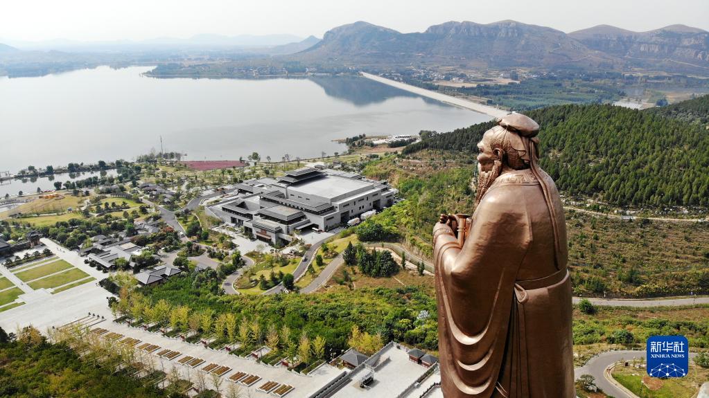 9月27日拍攝的曲阜尼山講堂(無(wú)人機照片)。