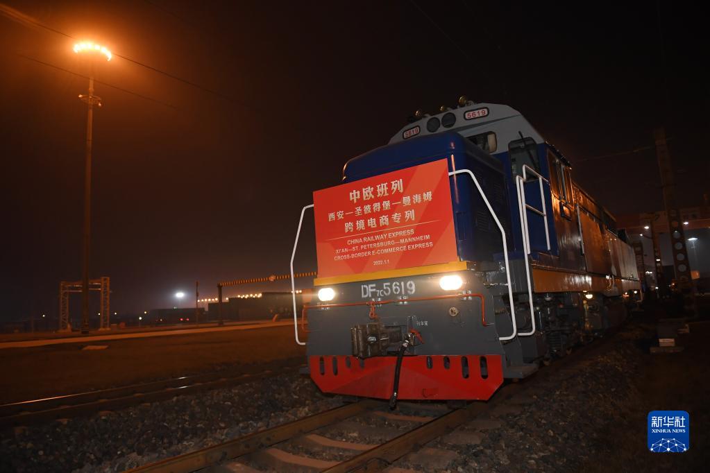 中歐班列長(cháng)安號從西安國際港站出發(fā)開(kāi)往德國曼海姆(2022年1月1日攝)。