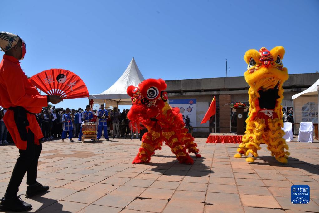 9月27日,塔那那利佛大學(xué)孔子學(xué)院學(xué)生表演舞獅。