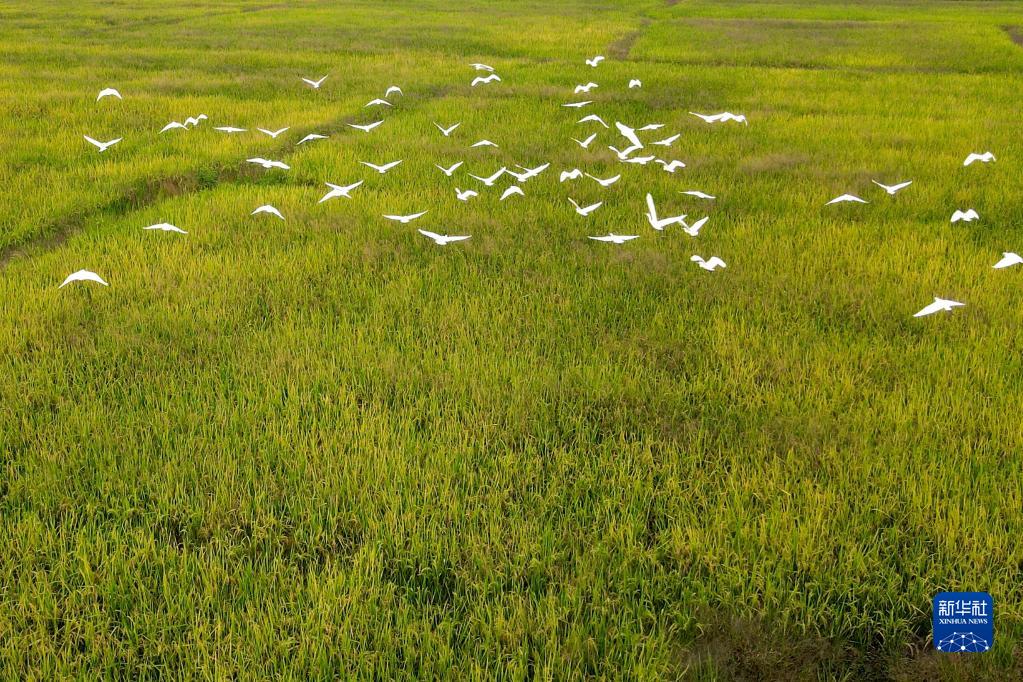 眼下正是秋收時(shí)節,在安徽省郎溪縣飛鯉鎮,稻香撲鼻,白鷺飛舞,一派金秋美麗景象。
