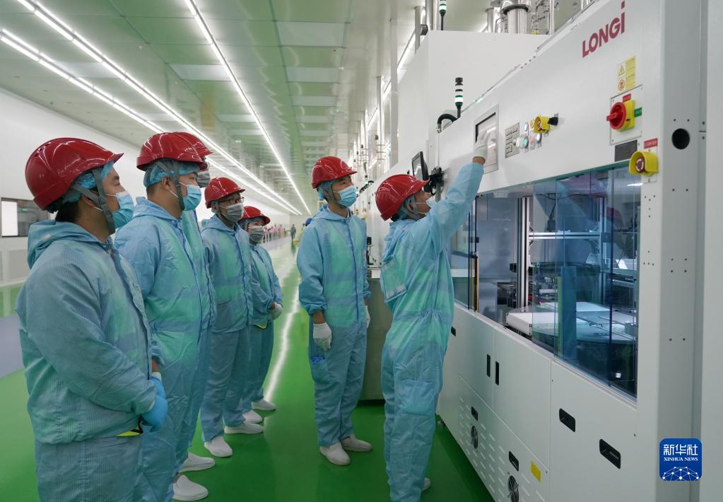 9月28日,工人在隆基綠能15GW高效單晶電池項目車(chē)間內進(jìn)行學(xué)習培訓。