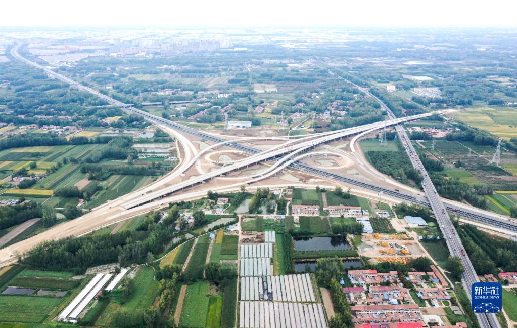 與京滬高速公路互通的連宿高速公路沭陽(yáng)南樞紐正在建設中(9月27日攝,無(wú)人機照片)。