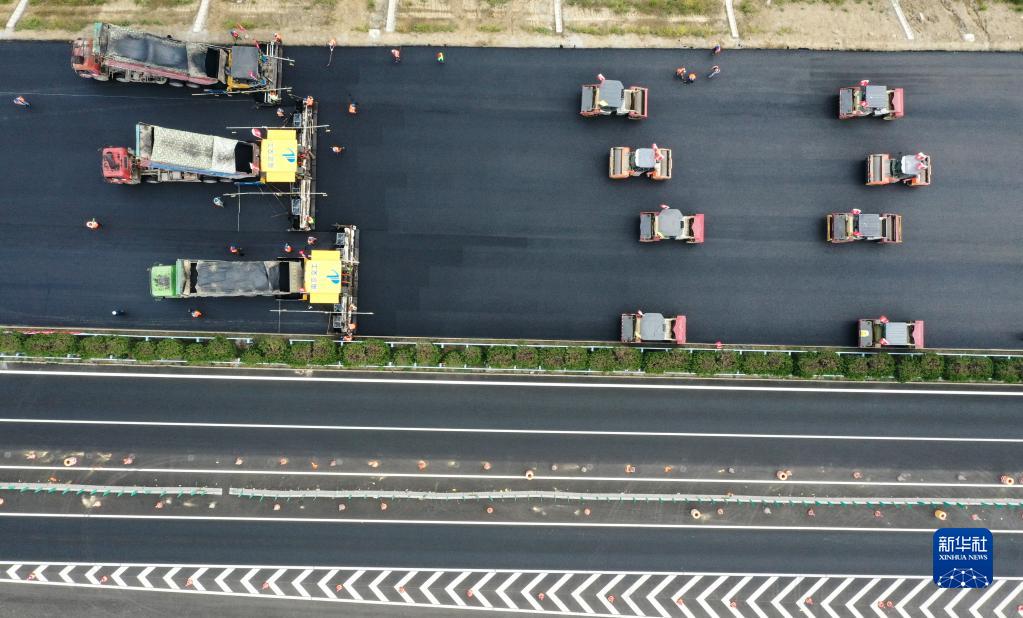 9月28日,京滬高速公路淮安段正在擴建施工中(無(wú)人機照片)。