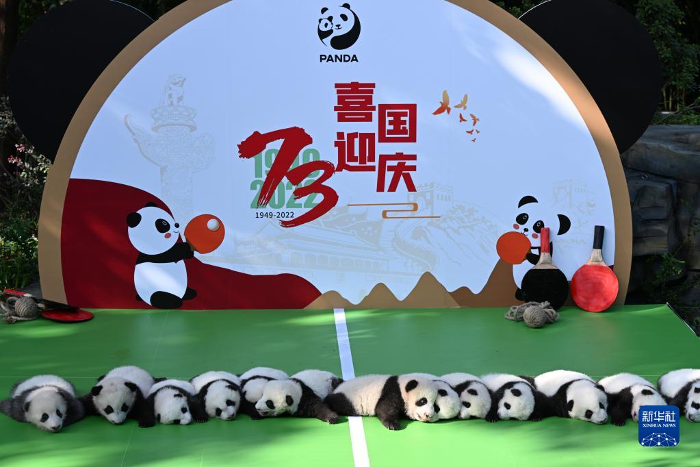 當日,為迎接即將到來(lái)的國慶佳節,成都大熊貓繁育研究基地內十余只2022級新生大熊貓寶寶一起亮相太陽(yáng)產(chǎn)房。