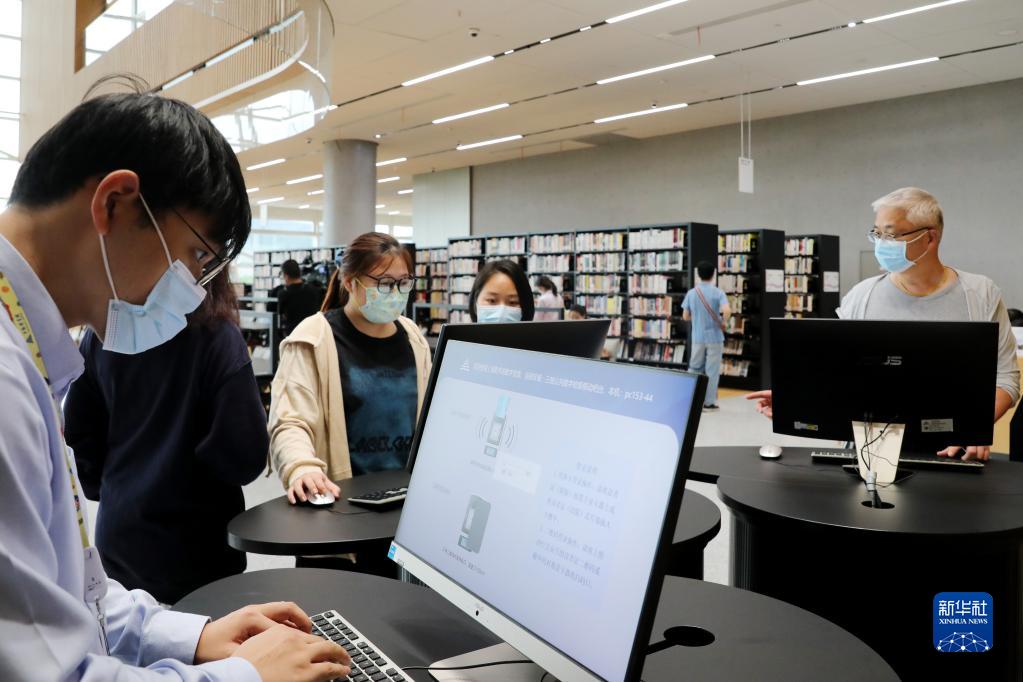 9月28日,讀者通過(guò)電腦檢索系統查詢(xún)書(shū)籍。
