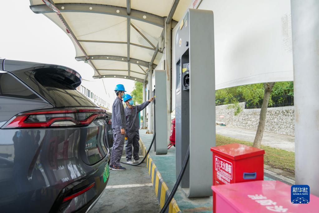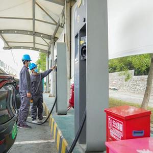 9月28日,工人在滬寧高速黃栗墅服務(wù)區檢查充電設施運行情況。