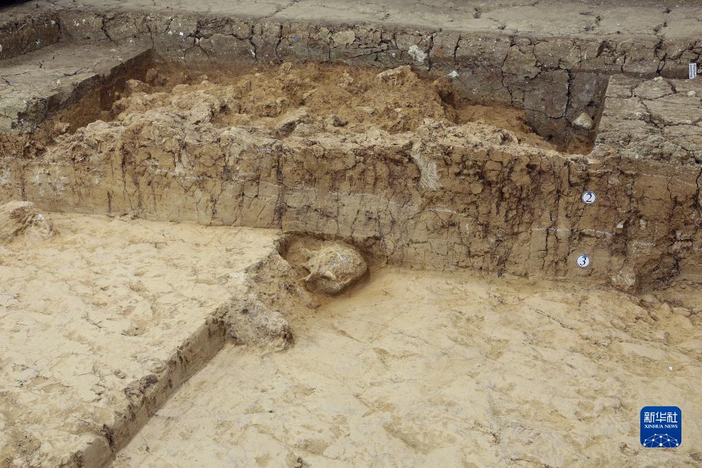 湖北十堰學(xué)堂梁子遺址發(fā)掘現場(chǎng)被命名為“鄖縣人3號頭骨”古人類(lèi)頭骨化石出土情況(國家文物局供圖)。