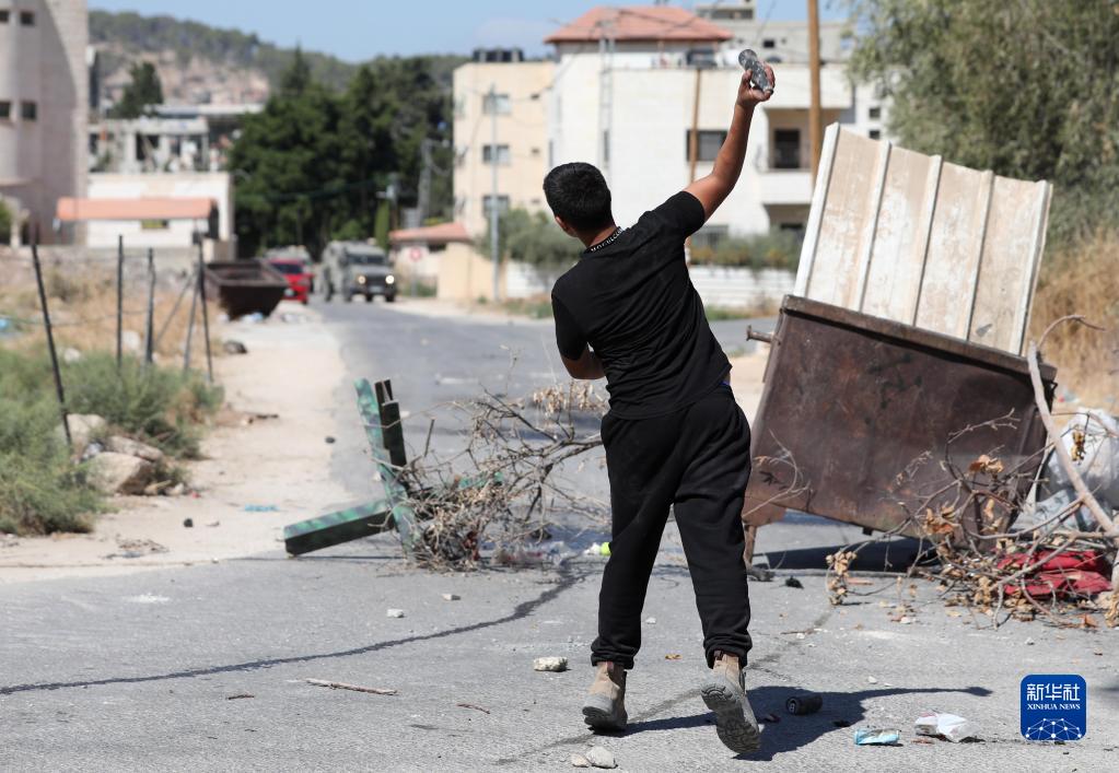 9月28日,在約旦河西岸北部城市杰寧,巴勒斯坦抗議者向以色列軍隊投擲物品。
