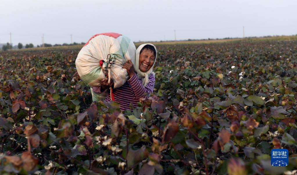 9月28日,山東省濱州市無(wú)棣縣西小王鎮棉農在采收新棉。
