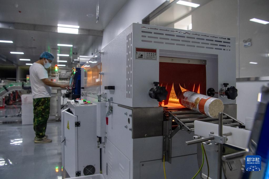 9月29日,在位于重慶忠縣新生港的重慶金沙河面業(yè)生產(chǎn)車(chē)間,工作人員在生產(chǎn)線(xiàn)上監測自動(dòng)化設備運行情況。