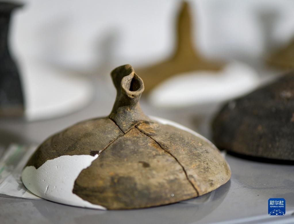這是此次考古發(fā)掘出土的陶制器蓋(9月27日攝)。