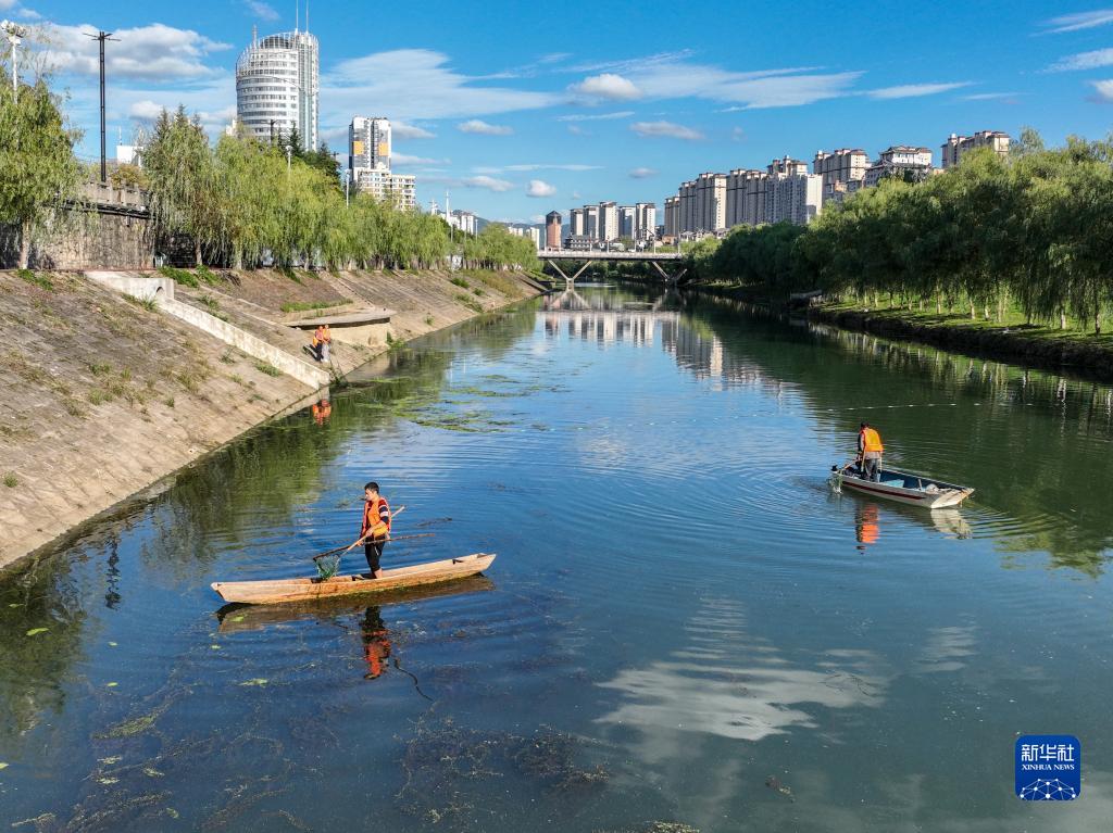 2022年9月29日,環(huán)衛工人在湖北省利川市境內的長(cháng)江支流清江清漂。