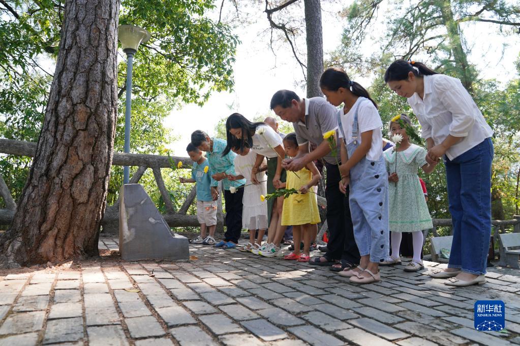 9月17日,華屋村村民在松樹(shù)下祭拜烈士。