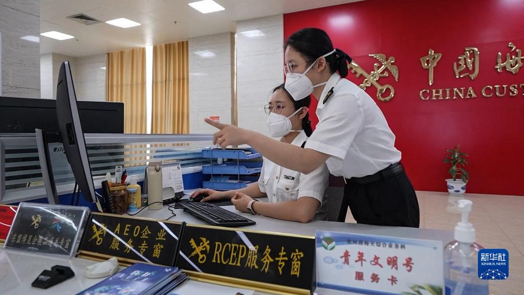 9月29日,欽州港海關(guān)工作人員在對跨境貨物運輸一站式辦理的數據進(jìn)行整理統計。