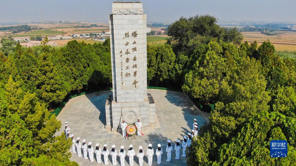 9月29日,海軍某試驗艦中心以“緬懷英烈精神 強軍戰線(xiàn)有我”為主題,組織官兵赴塔山烈士陵園開(kāi)展紀念活動(dòng)(無(wú)人機照片)。